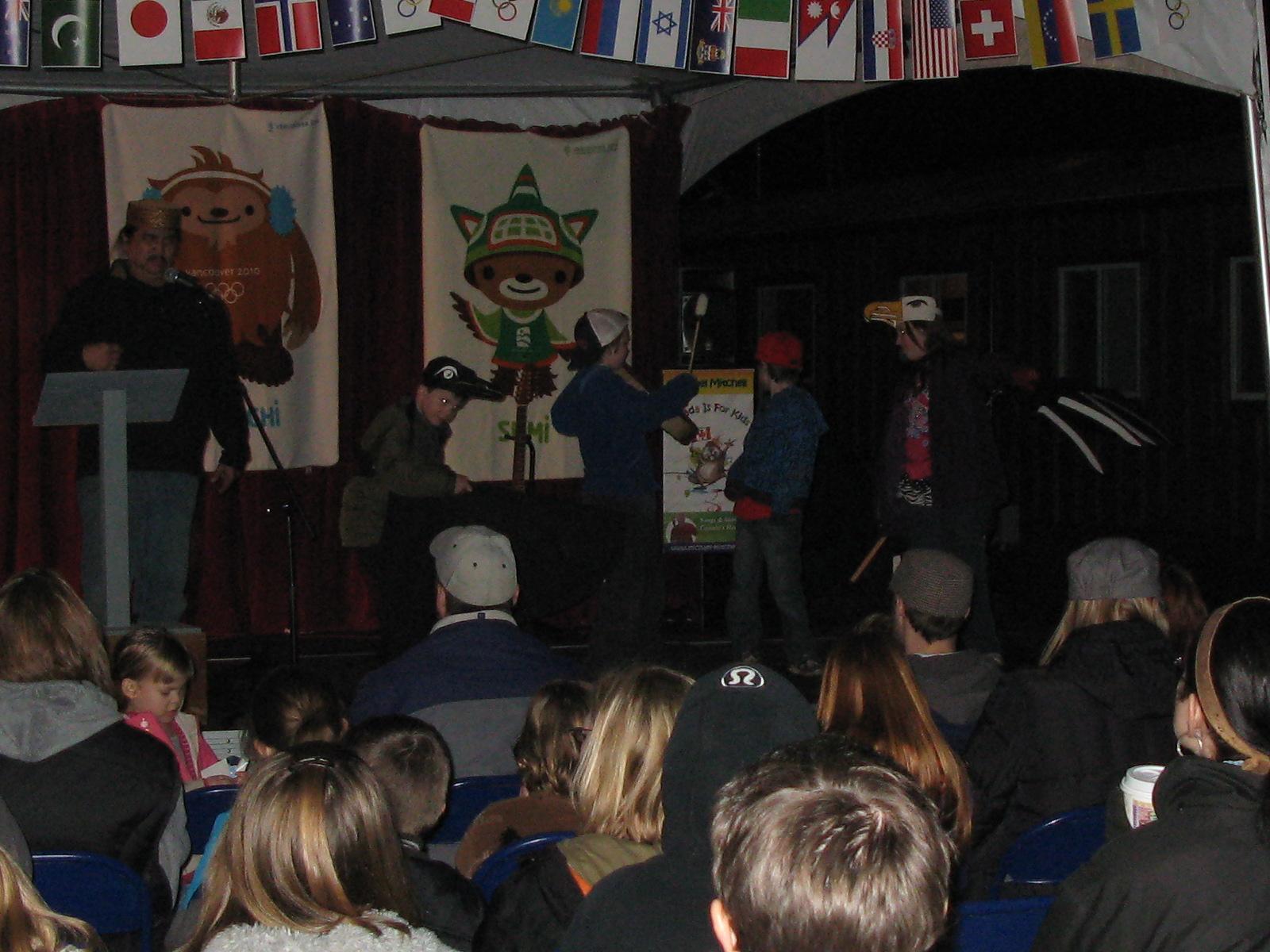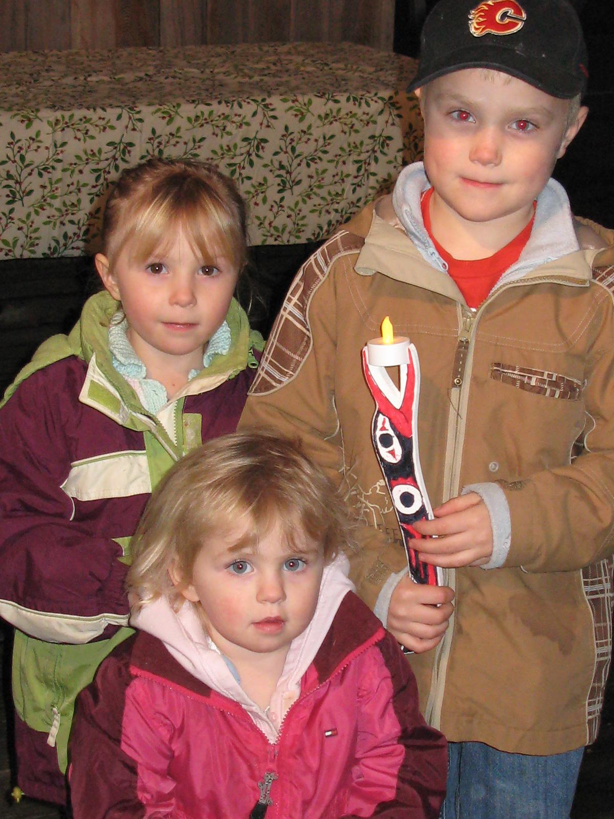 By the time Herb’s story was finished it was dark outside. The story concluded with a parade around the perimeter of the audience. The children lit their torches, held them high and ran round and round the audience while the parents and adults clapped in adulation. | ![]() | The evening finished off with a performance by Canadiana singer Michael Mitchell. He too encouraged audience participation. And a fine time was had by all! |